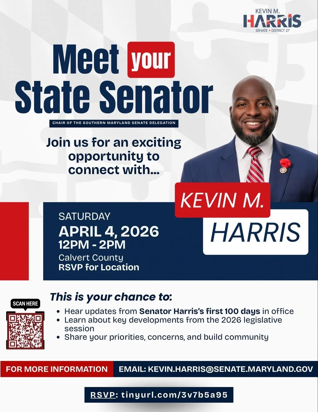 District 27 constituents, here’s your chance to connect with your state senator Kevin Harris. Hear updates from Annapolis, and let him know about your priorites. For more information, please reach out to kevin.harris@senate.maryland.gov.